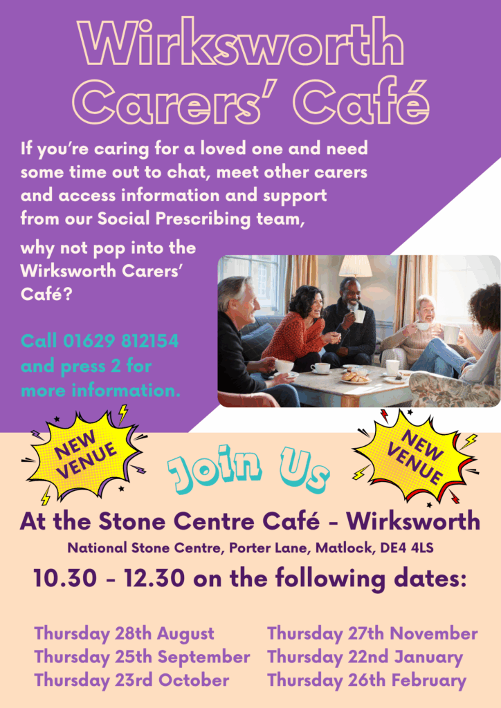 Join the Derbyshire Dales Council for Voluntary Service Social Prescribers at The Quarry Cafe at the Stone Centre in Wirksworth on the 4th Thursday of the month between 10.30 and 12.30.
